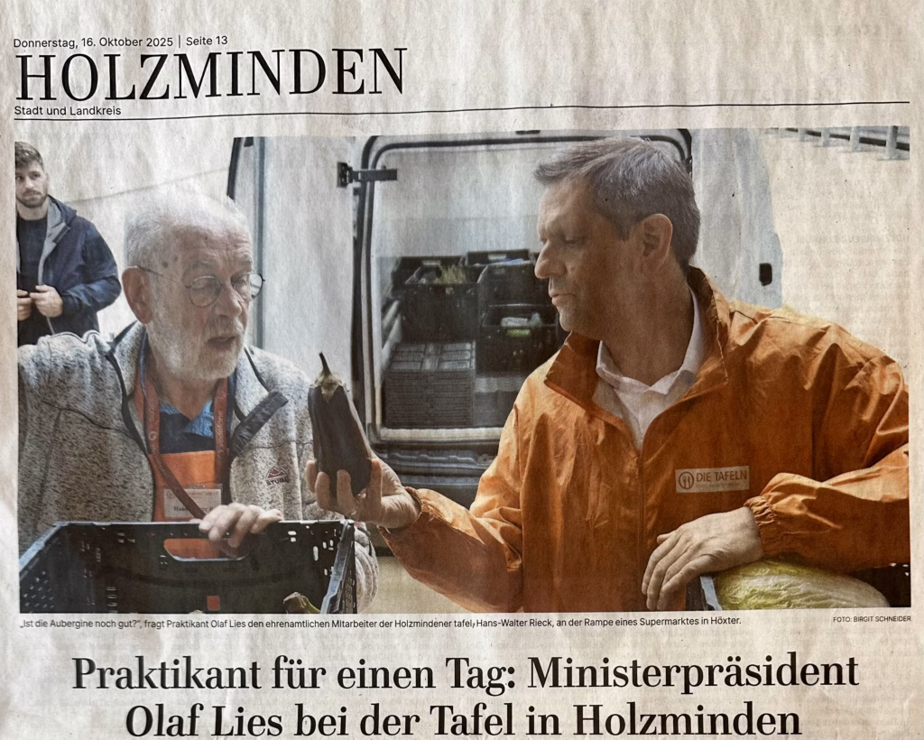 Kurzpraktikum des Ministerpräsidenten Olaf Lies, TAH vom 16.10.25 von tafel-holzminden | Okt. 21, 2025 | Zeitung | 0 Kommentare